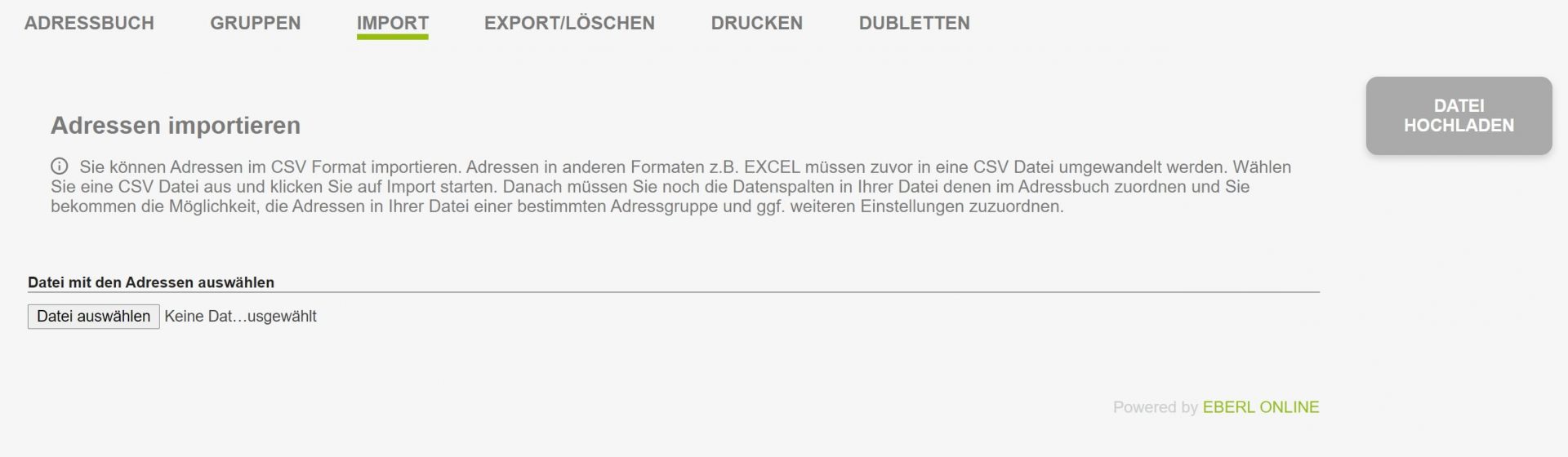 Hier können Sie zum Beispiel Adressen aus anderen Systemen in Ihr Adressbuch importieren.